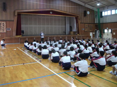今日は、空手の池田先生の最終来校日となりました。10日間にわたり、本校の子ども達のために、丁寧に空手の指導をしてくださいました。おかげ様で、10日前とは見違えるほど上手な演武を身に付けることができました。