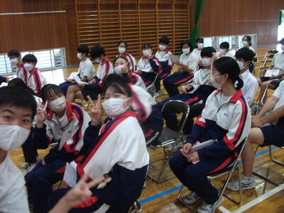最後に、日曜日に修学旅行への出発を控えた3年生は、6時間目に事前集会をしていました。整然と並び、校長先生の話を真剣に聞く姿はさすが3年生。校長先生からは「社会のルールを守ること」「学校のルールを守ること」「感染症対策をすること」の3つの話がありました。ルールを守って、体調を崩さず、楽しい3日間を過ごしてほしいと思います。