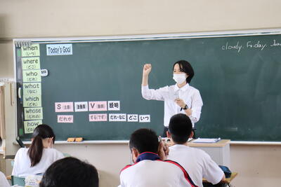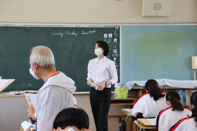 先週から本校に来ている教育実習生は、いろいろな先生方の授業参観を終え、今週から実際に授業をしています。本日の2時間目は、3年生の学級で授業をしていました。緊張した様子でしたが、ALTと一緒に学習を進めており、子ども達の表情にも笑顔が見られました。残り半分の実習期間ですが、充実した日々を過ごしてほしいと思います。