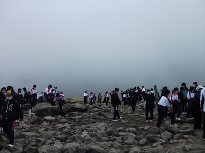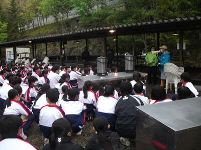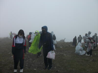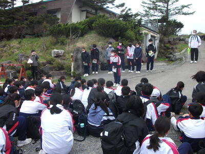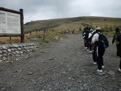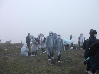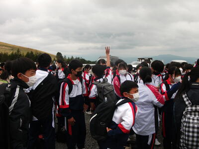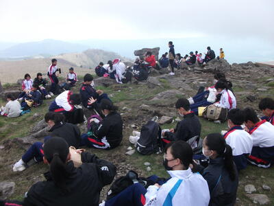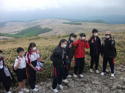 林間学園1日目、途中、横川SAでの休憩をはさみ、無事に登山ができました。先日の映像のような青空の下!とはいかず、曇り空の下での登山でしたが、山頂まで登りきることができました。下山中には雨が降り出したようですが、みんな元気とのことです。