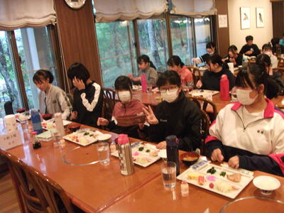 林間学園2日目が始まりました。生憎の天気だったようですが、眠い目を擦りながら朝食を食べました。2日目は農村体験とキャンプファイヤーが予定されています。朝ご飯をいっぱい食べて、みんな元気に楽しんでほしいです。