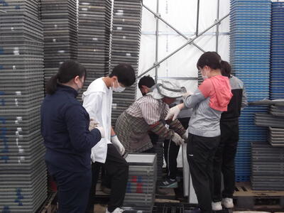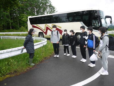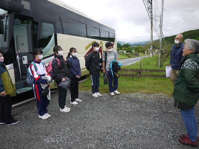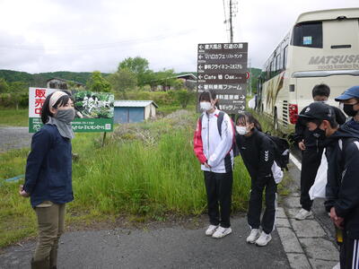 4組です。お花の仕分けをさせてくださった方や木の加工をさせてくださった農家の方々もいたようです。クラスごとにバスでお世話になる家に向かい、はじめにしっかりとあいさつができました。1日お世話になったたくさんの農家の方々、本当にありがとうございました。