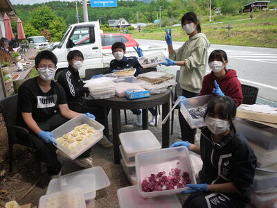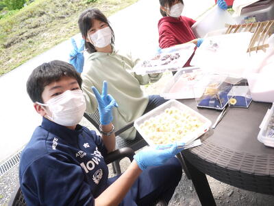 1組の農村体験の様子です。自然いっぱいの環境の中で、班ごとに農家の方々にお世話になりました。お昼ご飯は持って行ったお弁当をみんなで食べましたが、一緒におやつを作ってくださった家庭もあったようです。ありがとうございます。