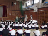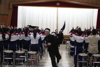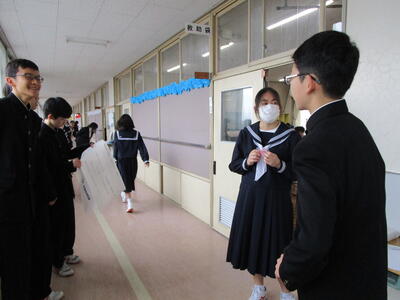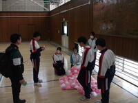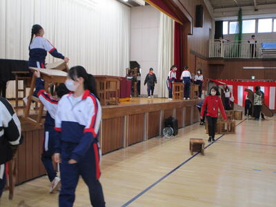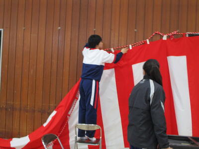 今日はまだまだ続きます。体育館に再度集合し、明日の入学式の練習、そして体育館や1年生教室の装飾をして、お昼に下校となりました。