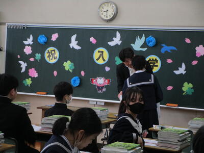 新入生たちは、学級発表の掲示を見てドキドキしながら自分の教室に入ったことと思いますが、教室では先輩が温かく出迎えてくれ、ちょっとホッとしていたようでしたにっこり