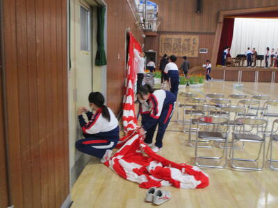 今日は競技や係の準備、会場設営をして、明日に備えました花丸