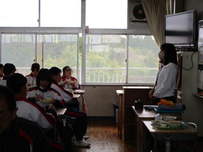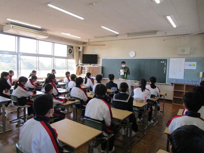 給食の時間を利用して、スクールカウンセラーの先生が1年生の各教室で、自己紹介をしましたお知らせ