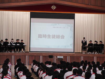 今日は、臨時生徒総会を開催し、委員会再編について話し合いました。