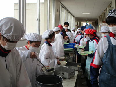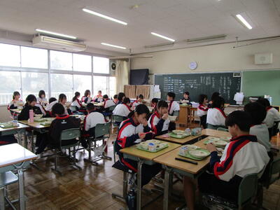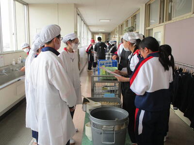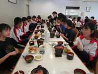 給食の時間では、配膳がとてもスムーズになり、今日もみんなモリモリ食べていました花丸