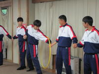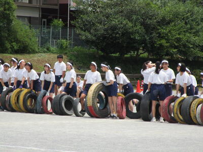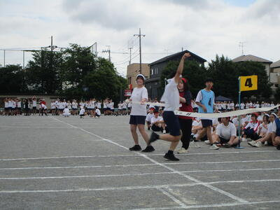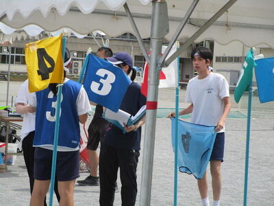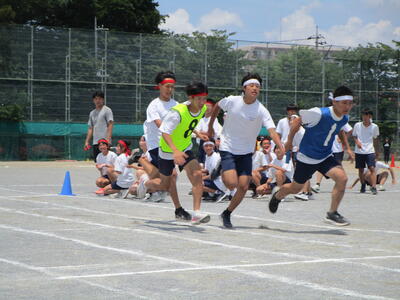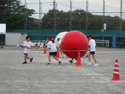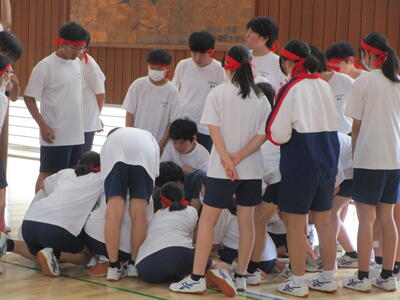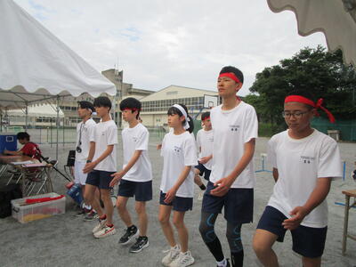 朝は実行委員が練習予定を立てて打合せ、種目の練習中は、みんなで知恵を出し合って作戦を練っています。だんだんチームワークが高まってきました花丸