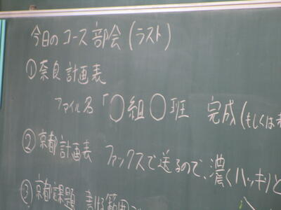 今日は、1年生は「校内めぐり」、どの学年も「自己紹介カード」や「今年の抱負」の作成、「学級レク」「新入生歓迎会の練習」「林間学園オリエンテーション」などをしました。