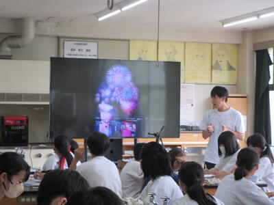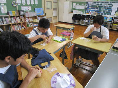 美術の授業ではタブレットを活用してポスターの原案作り、若潮学級の授業ではクラフトテープでカゴづくりです。みんな真剣に集中して取り組んでいました花丸
