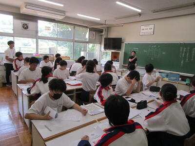 林間学園や市内大会前半が終了し、今日は授業に落ち着いて取り組む西中生でした花丸