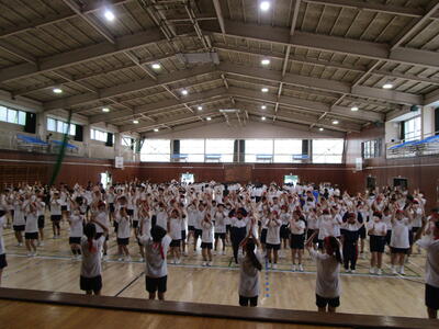 最後に全校応援と校歌で全校が一体となりましたキラキラキラキラ「西中愛」が体育館中に溢れましたハート花丸
