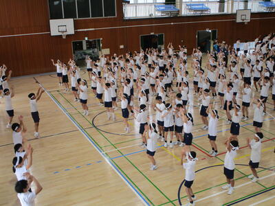雨今日は朝から雨となり、練習は全て室内で実施しました。それでも元気に取り組む生徒たちでした花丸