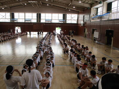 午前中は雨が降っていたので、体育の授業は体育館でバトンパス練習を行っていましたキラキラ体育祭に向けて、着々と練習しています!