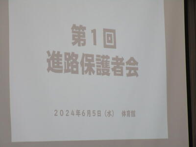 進路保護者会は、1年生2年生3年生の保護者と3年生の生徒が参加し、これからの進路選択について、進路指導主任から説明をし、今後の準備について確認をしました。3年生たちは、とても真剣に説明を聞いていました花丸