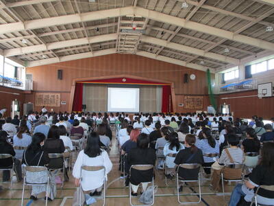 まず13名の先生方の着任式、そして始業式、その後は職員の担当学年・担当学級・部活動顧問の発表でした。始業式の後は2年生の学級発表があり、2,3年生たちは、新しい教室に移動して新しい学級をスタートさせました花丸