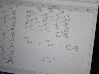 レシピを考え、材料と調理道具を準備し、経費と売り上げをExcelを活用して計算し、立派に商店を経営していました合格
