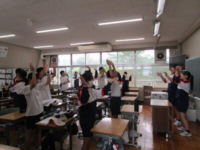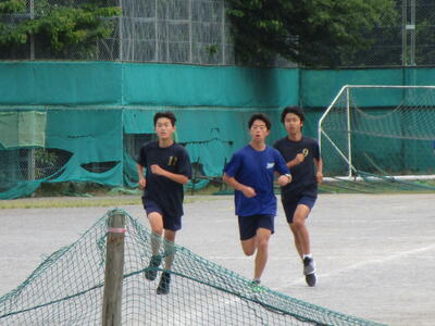 朝練習に励む卓球部、駅伝部そして、体育祭に向けて応援練習