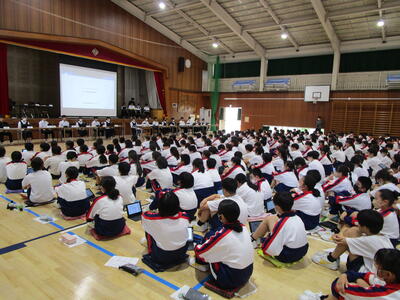 午後は生徒総会を開催しました。今まで生徒会本部や委員長さんたちが一生懸命準備を進め、全校生徒がタブレット持参で熱心に話し合いを繰り広げました。今年の生徒会活動の方針が決定し、これから本格的に始動です