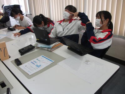 2年生の技術の授業です。今年、市教育委員会より学校に教材として配布された「toio」を使ったプログラミングの学習をしていました。パソコンで「右に80歩動く」「左に1秒動く」「右に90度回転する」などなど、様々な指示を入力し、小さい機械を動かしていました。はじめはイメージと動きがなかなか一致せず、機械が机から落ちてしまいそうな生徒もいましたが、徐々に慣れてくるとイメージ通りの動きが入力できるようになってきました。まずは「toio」を使ってみる時間でしたが、子ども達のICTに対する順応力と対応力の高さに感心しました。