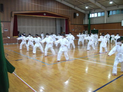 6時間目、1組と2組は体育館で空手の授業です。昨年度受けた指導を思い出しなら活動していました。