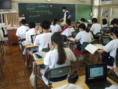 今週の木曜日と金曜日は1学期の期末テストということもあり、いくつかのクラスでは各教科のワークに取り組む姿が見られました。冷房が効いている教室ですが、感染症予防のため換気をしており、場所によっては蒸し暑さも感じますが、どの子ども達も集中して学習に取り組んでいました。とても立派な姿だと思いました。また、わからない箇所を友達に聞くと、ジェスチャーを加えながら優しく教えている姿も見られました。友達に教えることは、自分の理解を深めることにもつながります。しかし、何より、友達に対する優しさが素晴らしいと思いました。これからも持ち続けてほしい気持ちです。