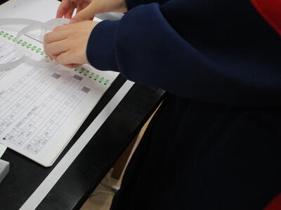 図書室整備ボランティアに参加してくださった方々が、牛乳パックを利用して、本をきれいに書架に並べることができるグッズを作ってくださいましたいつもありがとうございます