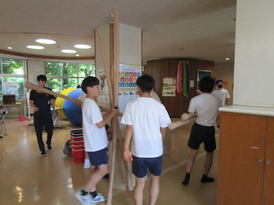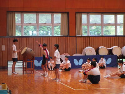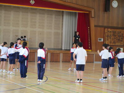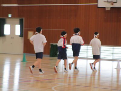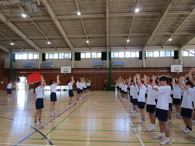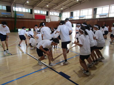午前中は雨が降っていたので、体育の授業は体育館でバトンパス練習を行っていました体育祭に向けて、着々と練習しています