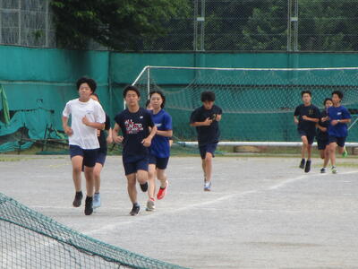 朝練習に励む卓球部、駅伝部そして、体育祭に向けて応援練習