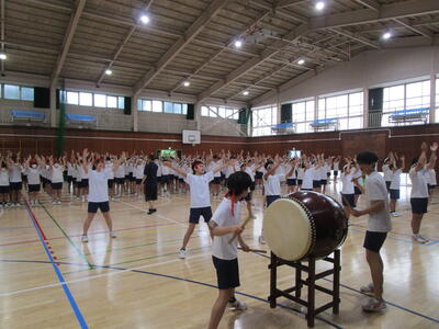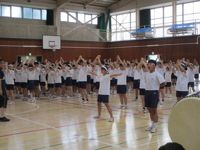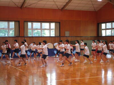 今日は朝から雨となり、練習は全て室内で実施しました。それでも元気に取り組む生徒たちでした