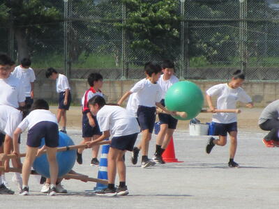 今日は、結団式、学年種目練習、全校種目「大玉おくり」練習、係活動を行いました