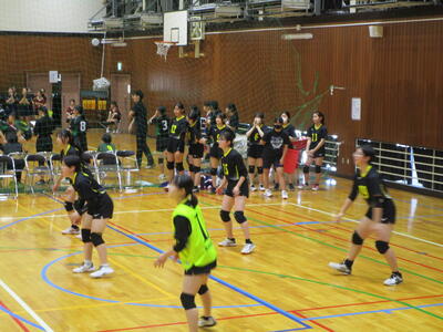明日は市内大会2日目体育館では、バレー部が気合いの入った練習をしていました