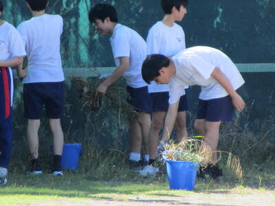 さらにPTAボランティアの方々が除草作業をしてくださり、おかげさまでグラウンド周辺がスッキリとしましたありがとうございました
