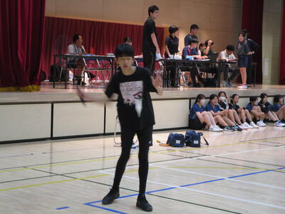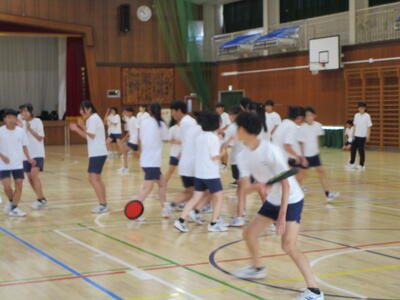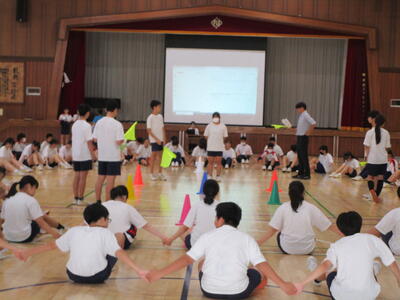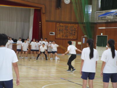 2年生は、9月に実施する林間学園で行うキャンプファイヤーの練習をしていました