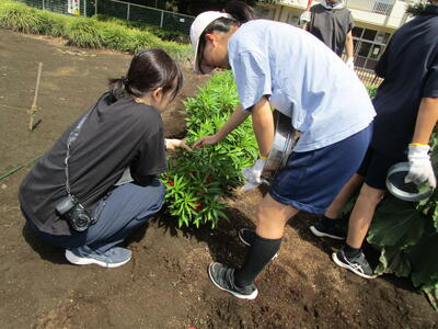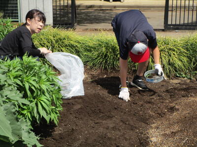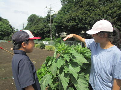 若潮学級は、若潮ファームで栽培しているヒマワリとホウセンカの生育具合確認と、畑の雑草取りをしました