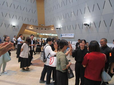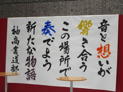 ⬇ホールのホワイエには、袖ケ浦高校書道部の作品が飾られていました。