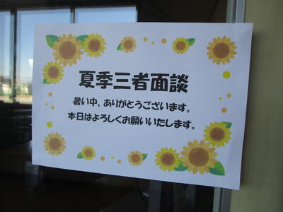 夏休みに入り、保護者面談、三者面談を行っています。保護者の皆様には、暑い中ありがとうございます。
