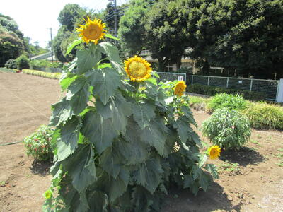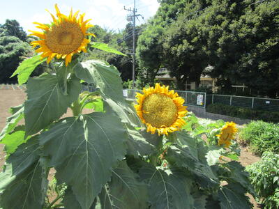 若潮ファームで育てているひまわりです夏休みに入り大きな花を咲かせています