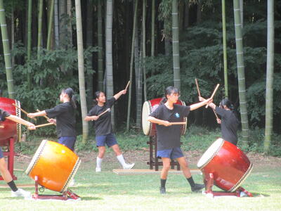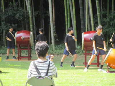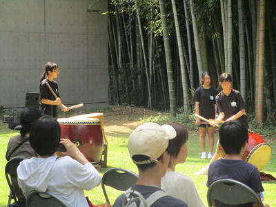 保護者の皆様には、和太鼓や畳の運搬をお手伝いいただき、美術館の方々には演奏の機会をいただいたおかげで、総合文化部の練習の成果を観ていただくことができました。本当にありがとうございました