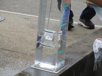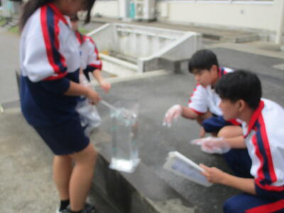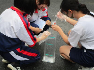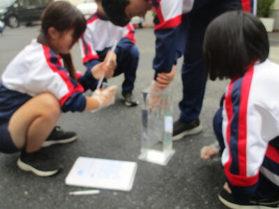 10/15(水) 外で理科の実験をする3年生たち 気圧の実験でした