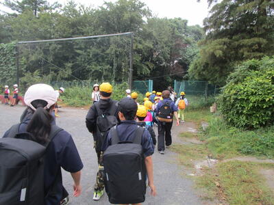 小学校を出発し、流山中央消防署、森の美術館、入江農園の3カ所を徒歩で巡りました