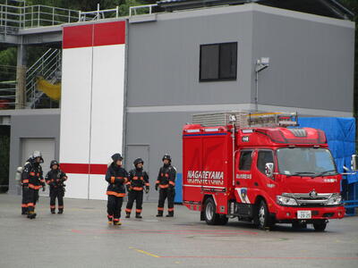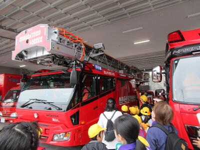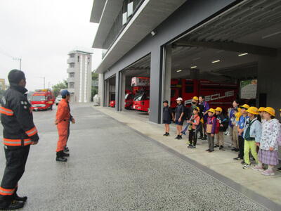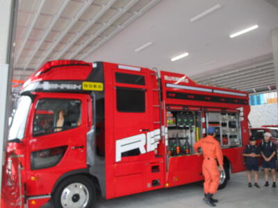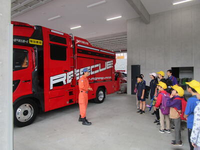 流山中央消防署は、今年の6月に移転し、広くて立派な新庁舎でした。たくさんの種類の作業車が並んでいて、子どもたちは興味津々。署員の方にたくさん質問を投げかけていましたが、ひとつひとつ丁寧に答えてくださり、ありがとうございました