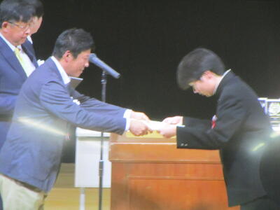 流山市内全中学校・高校から、代表1名が出場しており、本校からは3年生男子が「声の力」というテーマで発表、見事「優秀賞」(第2位)を獲得しました