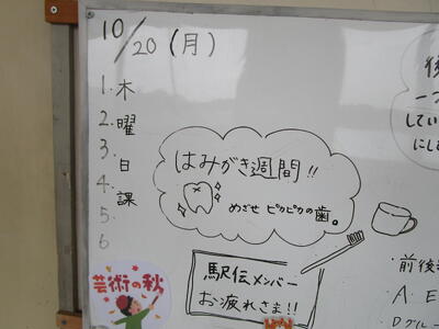 また、後期の委員会組織になり、保健委員会は「歯磨き週間」の取組を実施中22日(水)の給食時には、歯磨き取組の各学年1位の表彰がありました