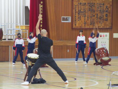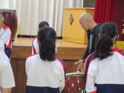 10/26(日) 西中太鼓隊の生徒たちが、和太鼓奏者 荒川社中さんにご指導いただきました