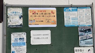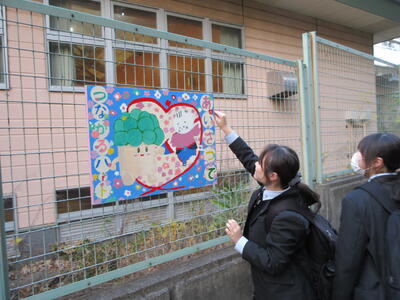その中で、西初石1.2丁目自治会「こんぴら祭り」のポスター作りに取り組んだ生徒たちの作品を、自治会掲示板に掲示していただきました