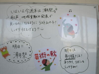 明日(10/31)は合唱コンクール・潮祭\^o^/