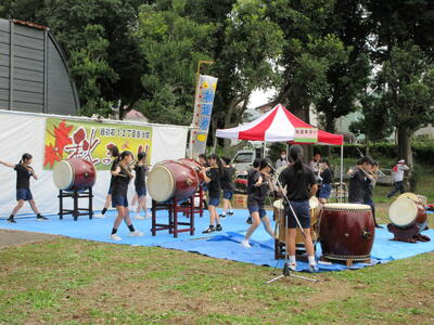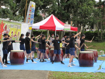 11/2(日) こんぴら公園で、西初石1.2丁目自治会「こんぴら祭り」が行われ、総合文化部が和太鼓演奏を披露しました